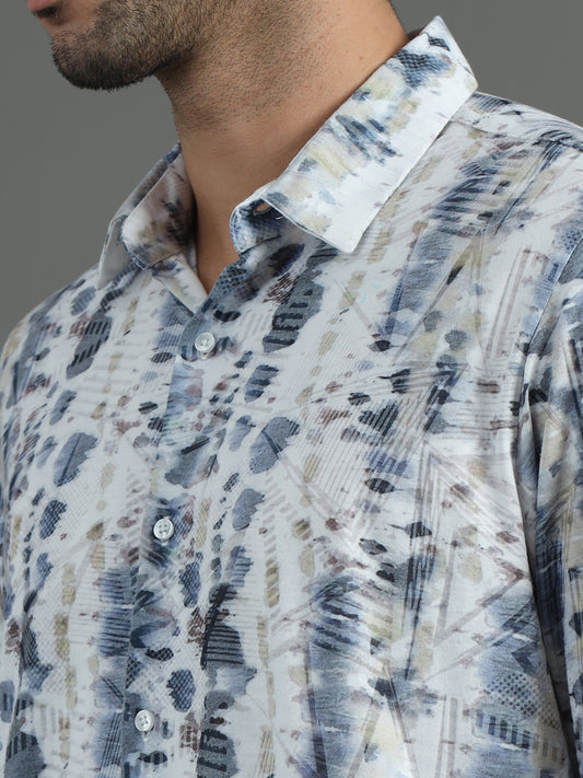 Men Slim Fit Printed Spread Collar Casual Shirt